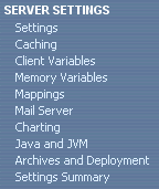Settings Summary這是實時產生一份關于CFMX服務器配置的報告。