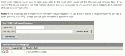 Mappings是在CFMX Server端創(chuàng)建一種名稱來代表目錄路徑的處理方式。如下圖:
