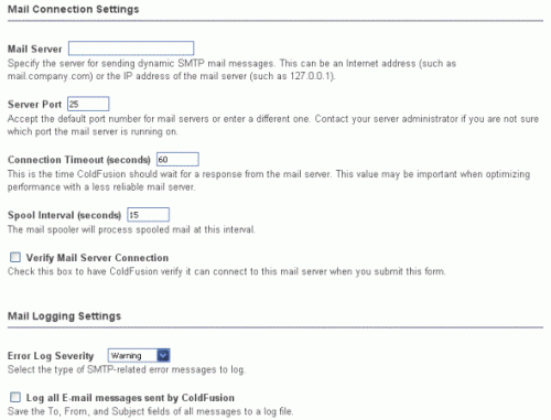 Mail Server則是設置CFMX的郵件服務器,實際上,最好使用一個第三方的mailServer,比如Imail,不要使用IIS自帶的Mail服務器,用過的朋友自然對它的功能一清二楚。如下圖: