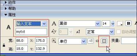 1、在舞臺上用文字工具拖出一個文本框,打開屬性面板,將其屬性修改為輸入文本,注意選中有邊框。如圖