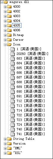 把 MSN Messenger 安裝目錄下的資源文件 msgsres.dll 拖到Visual Studio 2005工作區(qū),顯示如下: