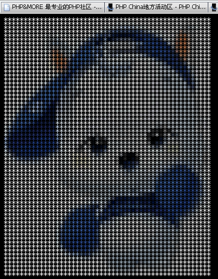 順便貼一個效果,用ASCII表示圖像。ImageColorAt()有一個很有趣的用處,它可以循環(huán)檢查