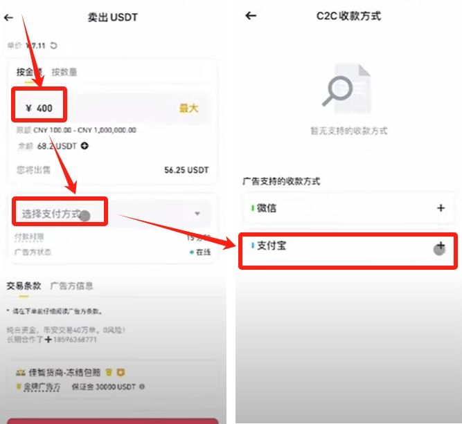 輸入你想要賣出的金額,選擇支付方式,添加支付寶。