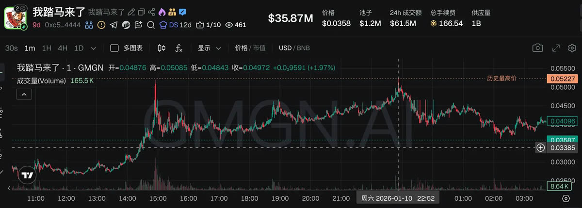 作為近一周的“中文 Meme 新龍頭”,“我踏馬來了”飛速上線幣安 Alpha,也為中文 Meme 概念板注入了一針強(qiáng)心劑。有關(guān)該 Meme 幣的相關(guān)討論,推薦閱讀《如何評(píng)價(jià)“我踏馬來了”上線幣安?》。