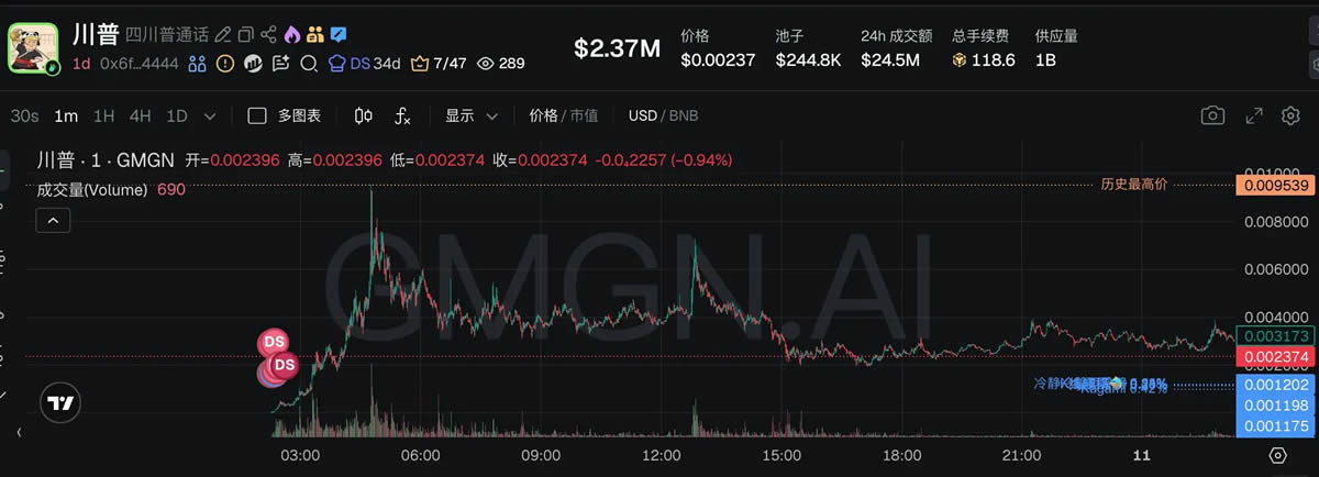 GMGN 鏈接:https://gmgn.ai/bsc/token/0x2433092b3554eefc154f5ee3a275ebf2a85f4444