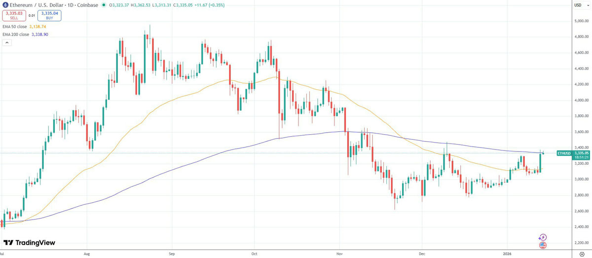 據(jù)TradingView報(bào)道,該資產(chǎn)在周三早盤交易中觸及3,375美元,創(chuàng)下自12月10日以來的最高水平。