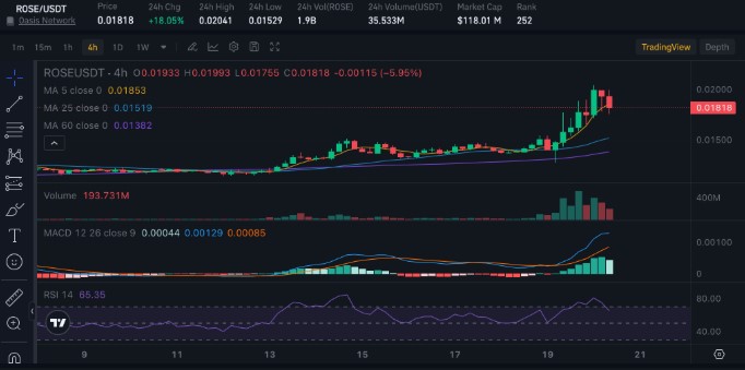 目前,ROSE 的交易價格約為$0.02243過去24小時內(nèi)下降1.18%,在過去七天內(nèi)下跌4.43%。根據(jù)可用數(shù)據(jù),該代幣的市值約為1.4311億美元,而過去24小時的交易量接近1.4243億美元。