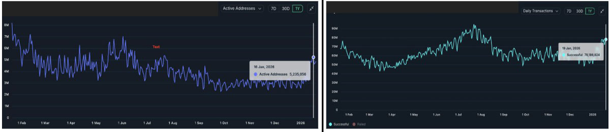 日均交易量在同期上漲20%,周二達(dá)到7800萬筆,這一水平自2025年8月中旬以來首次出現(xiàn)。這凸顯了該網(wǎng)絡(luò)的可擴(kuò)展性和日益增長的采納率。