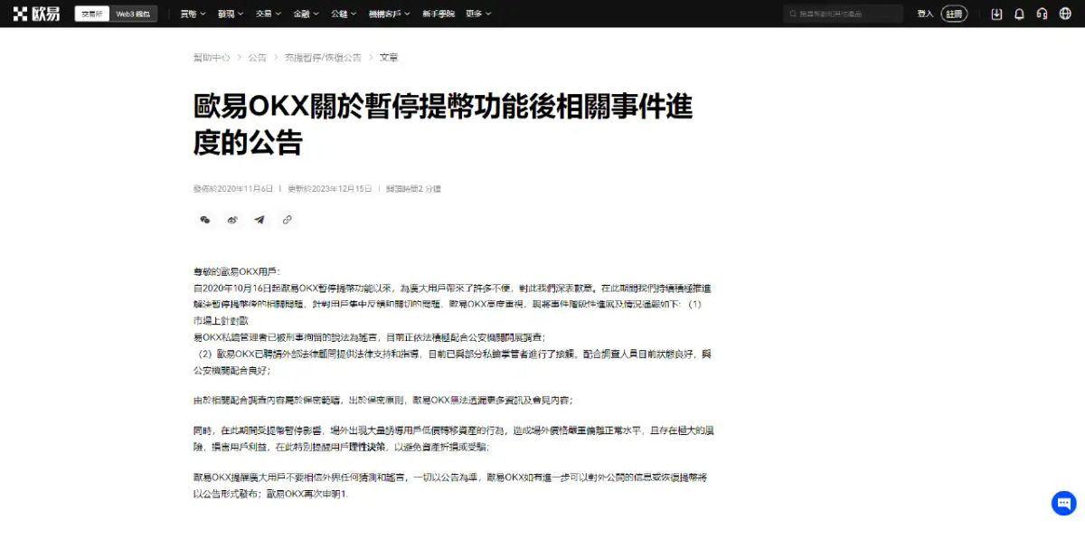 • 歷史上的提幣暫停事件:OKX曾經(jīng)發(fā)生過因為「技術(shù)或管理問題」導(dǎo)致的提幣暫停事件。這類事件可能會影響用戶對交易所的信任度。