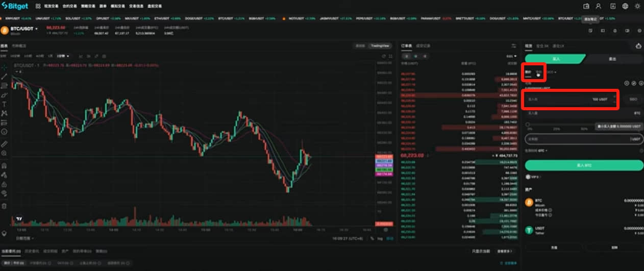 我們可以按照幣的大小去買(mǎi),也可以按照金額去買(mǎi),比如說(shuō)我們想買(mǎi)100個(gè)USDT的比特幣,就在這里輸入100U就可以了。可以選擇市價(jià)或者限價(jià)去買(mǎi),市價(jià)它是立馬成交的,收錄續(xù)費(fèi)會(huì)稍微貴一點(diǎn)。限價(jià)會(huì)比較便宜點(diǎn),但是他是掛單成交的,如果達(dá)到你的掛單價(jià)格,他也會(huì)立馬成交。