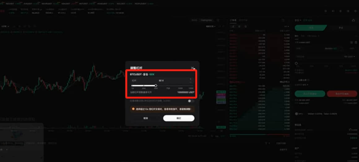 上方選擇杠桿,最高有125倍杠桿,杠桿越高你的風(fēng)險(xiǎn)就會(huì)越高。如果我選擇50倍,開(kāi)100U的價(jià)格的話(huà),下單后的成本就會(huì)占用2U的保證金額。