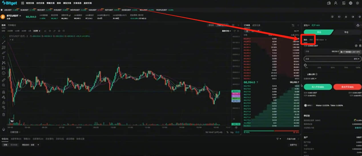 接下來(lái)我們看一下合約交易。合約我們來(lái)一般都是用U本位去做合約的。我們選擇好自己交易的幣種,比如說(shuō)BTC的合約,在右側(cè)這里輸入自己的交易金額,或者我們也可以拉動(dòng)下方的進(jìn)度條,按照倉(cāng)位的金額去開(kāi)單。