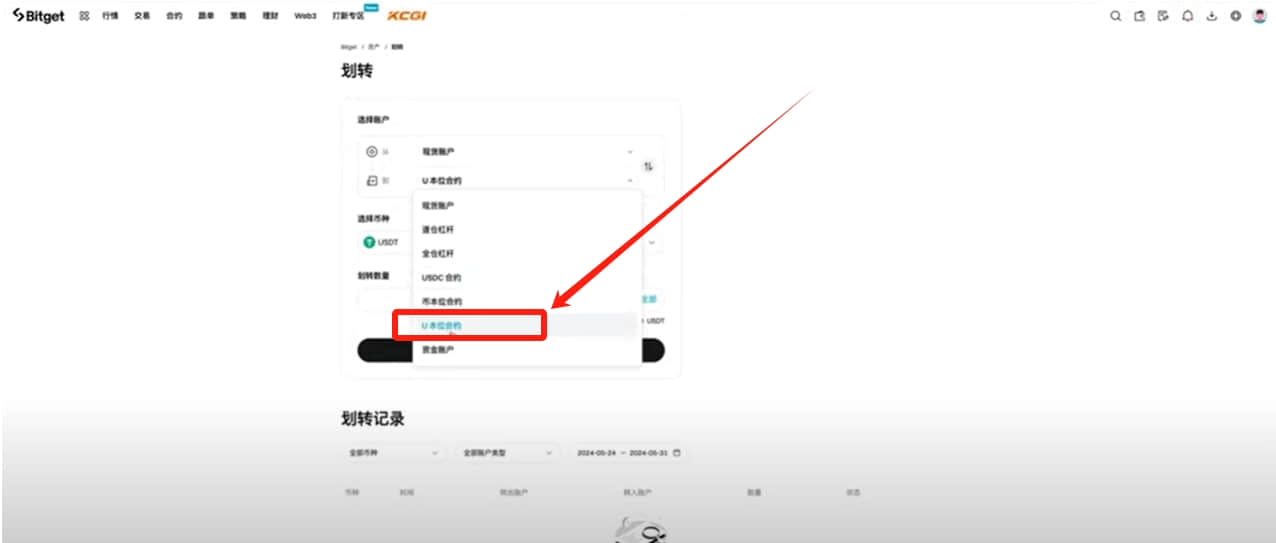 我們需要把自己的資金轉(zhuǎn)到U本位合約里面,這樣才可以去做交易的。