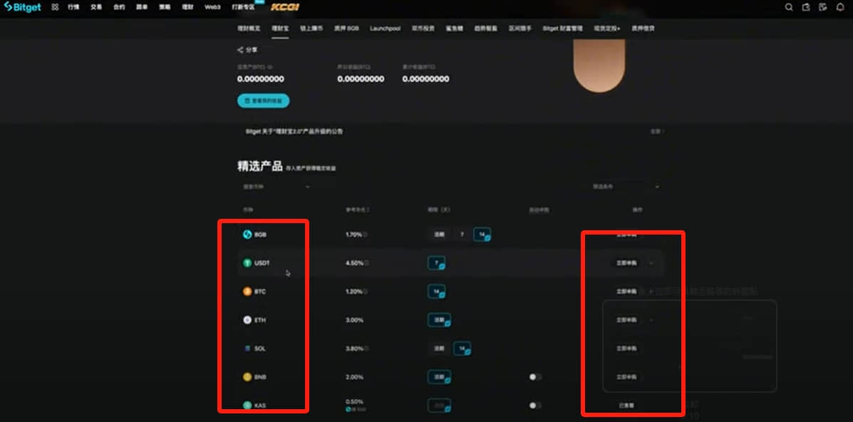 還有一些理財(cái)?shù)牟呗?。理?cái)它是有分保本和不保本的。下圖這些按照幣本位來(lái)說(shuō)都是保本的。我們可以在這里邊選擇存入的期限去申購(gòu)。