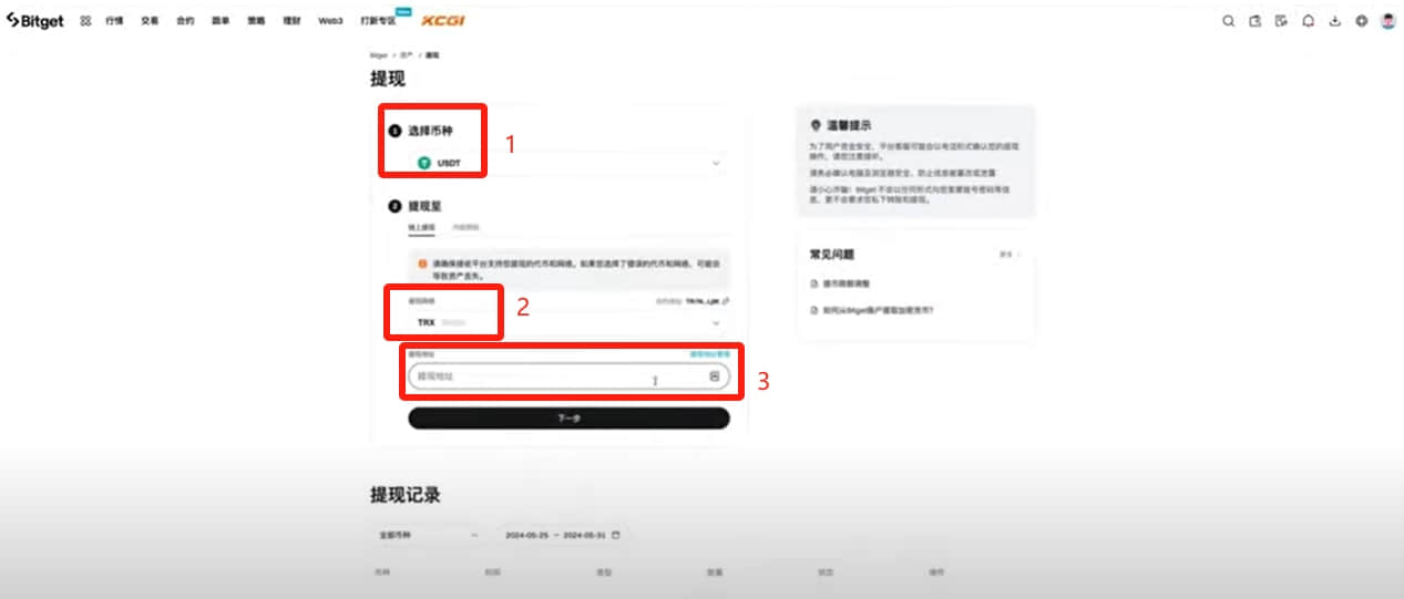 提現(xiàn)也一樣的,我們選擇好要提現(xiàn)的幣種,再去選擇一下網(wǎng)絡(luò),再把我們需要提現(xiàn)的地址填到這里就可以了。