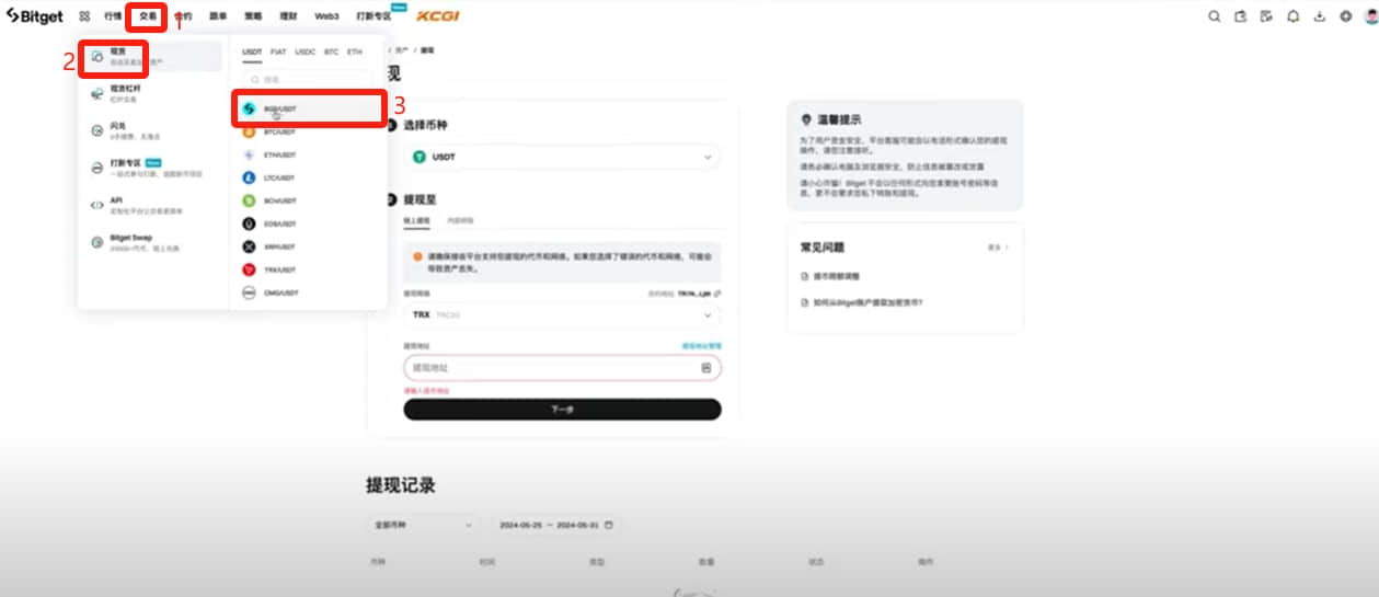 接下來(lái)我們來(lái)看一下,如何進(jìn)行現(xiàn)貨交易去買(mǎi)賣(mài)幣種。點(diǎn)擊【交易】,選擇【現(xiàn)貨】,選擇好你想要交易的幣種。