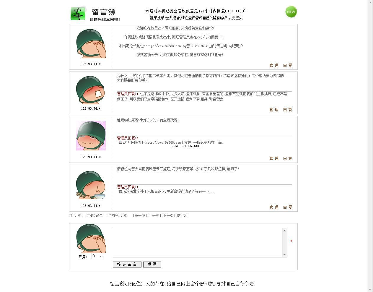 申江ASP留言本 1.24c 標(biāo)準(zhǔn)版 留言聊天 / 1.26MB