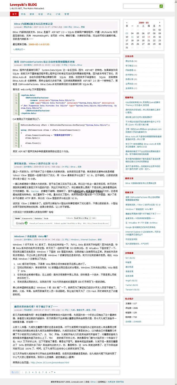 基于 ASP.NET 2.0和SQLite 的單用戶博客程序 Bitrac v1.22.0.1200 bulid 090514