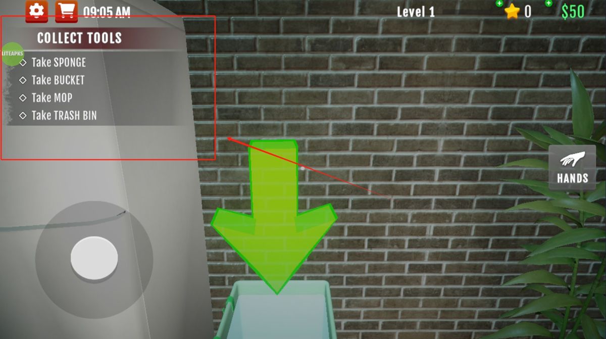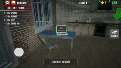 4、右手邊的hands是玩家完成任務(wù)可以選擇的工具,不同地方的打掃要選擇合適的工具。