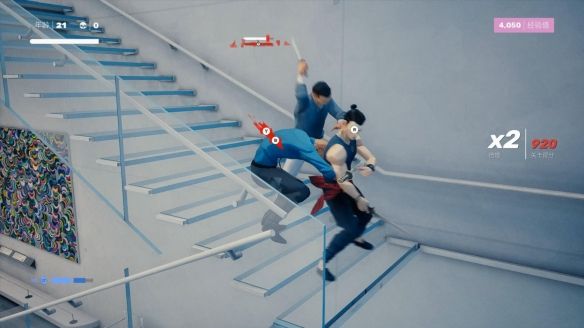 上樓后右轉(zhuǎn),擊倒兩人后繼續(xù)前進(jìn)。