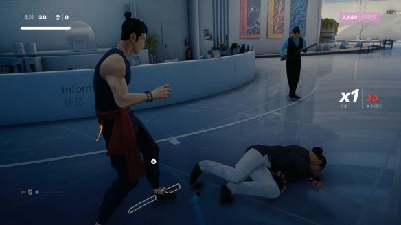 進(jìn)入美術(shù)館后先會遇到兩個安保人員,迅速解決掉一個后撿起刀解決另一個。