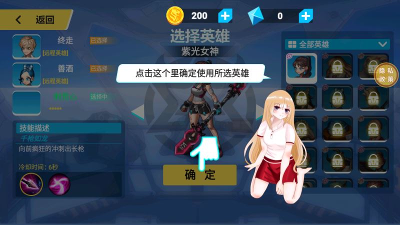 4、最后點(diǎn)擊【確定】按鈕,確認(rèn)選擇的英雄,進(jìn)入游戲?qū)?zhàn)環(huán)節(jié)。