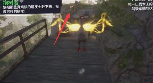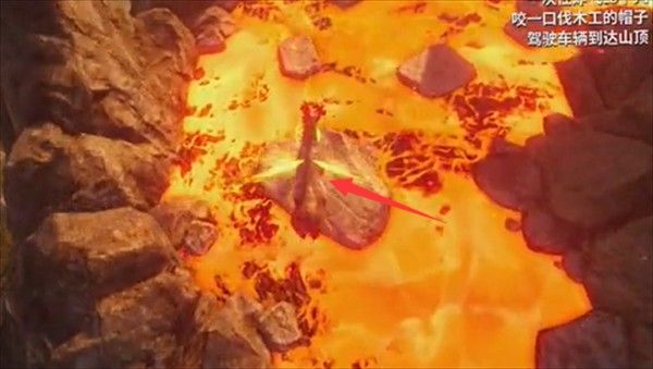 1、傳送到火山區(qū)域,通過木橋跳躍至石塊;