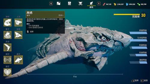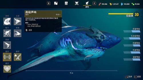 在《食人鯊》中,鯊魚的終極成長并非單一數(shù)值提升,而是通過進化形態(tài)系統(tǒng)實現(xiàn)能力分化。目前游戲共設(shè)有三大進化路線,分別為:暗影系、骨質(zhì)系、生物電系,每種形態(tài)均對應(yīng)不同的戰(zhàn)斗風(fēng)格與玩法取向。