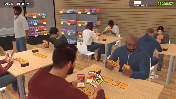 賺取利潤以再投資商店。擴大空間,解鎖新的卡牌套裝,并升級設(shè)施,以吸引更多顧客并增加收入。
