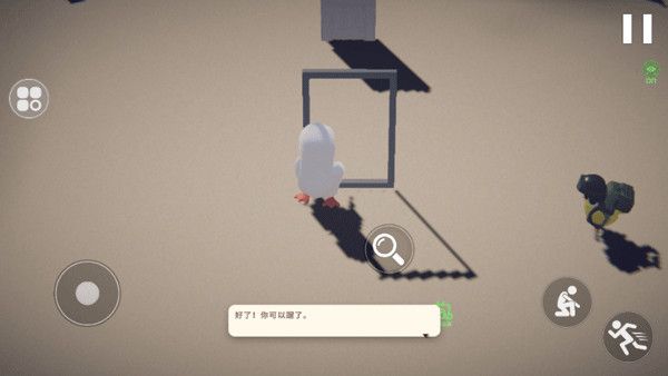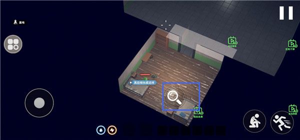 5、正式進(jìn)入游戲中左邊輪盤可以控制方向,右邊按鈕有蹲下、疾跑等;