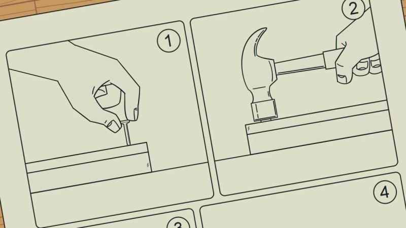 按照家具說明書提示,跟隨節(jié)奏敲擊釘子,需匹配釘子放置的節(jié)拍頻率。