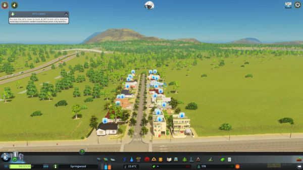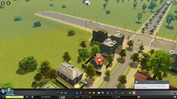 3、開始建城:注意電線,水管覆蓋到位,最好以標(biāo)準(zhǔn)格子路開始發(fā)展離預(yù)留的告訴留點(diǎn)距離。另外垃圾場(chǎng)先建在工業(yè)區(qū)入口,看道路上的綠色看是否能覆蓋到城里。