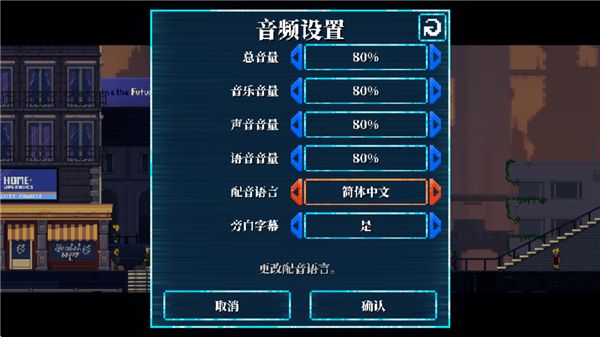 5、點擊配音語言后面的三角箭頭切換語言至簡體中文,并點擊確認;