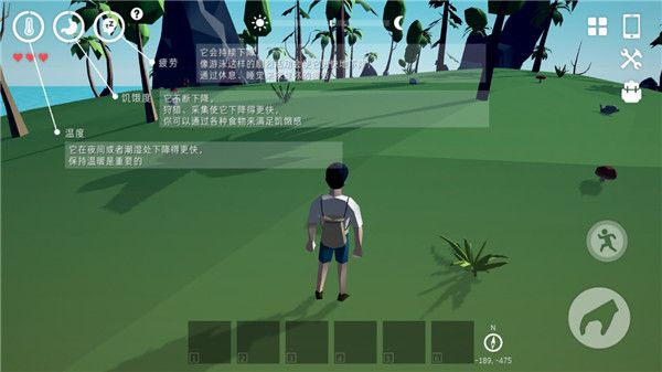 1、生存分為白天和夜晚,需要自己制作工具然后生存,食物來(lái)源全部都是需要自己獲得