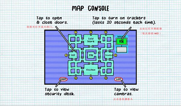 tips:在地圖上,你一次只能關(guān)三扇門。你的房門一次只能關(guān)閉10秒!追蹤 器設(shè)備一次只能工作10秒!