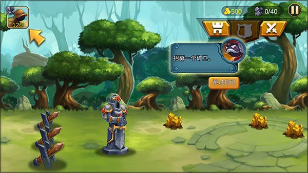2、首先需要招募礦工,他能幫助你獲取游戲金幣來(lái)讓你制造出更多更強(qiáng)的士兵。