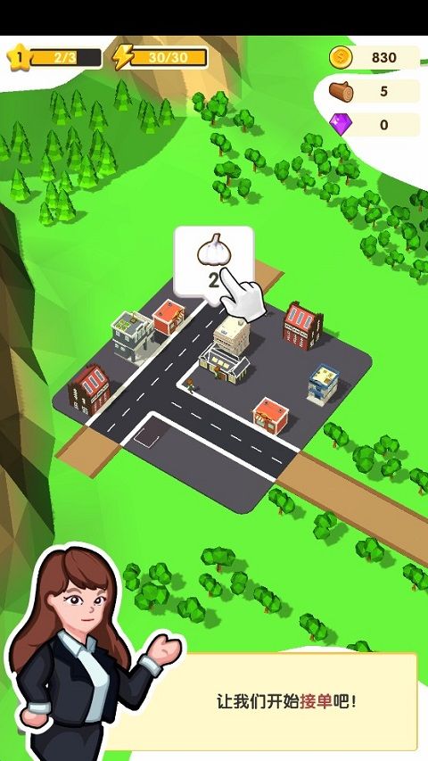 4、路修好后,開始接單!如圖所示,在城市區(qū)域點擊“氣泡”可以選中訂單,待你選中訂單后會自動選擇城市可用車輛進行運輸。