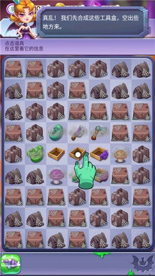 3、你只需要用手指滑動屏幕就可以完全玩這個游戲,通過連續(xù)合成獲得相應(yīng)的物品,完成重建魔法莊園的任務(wù)。