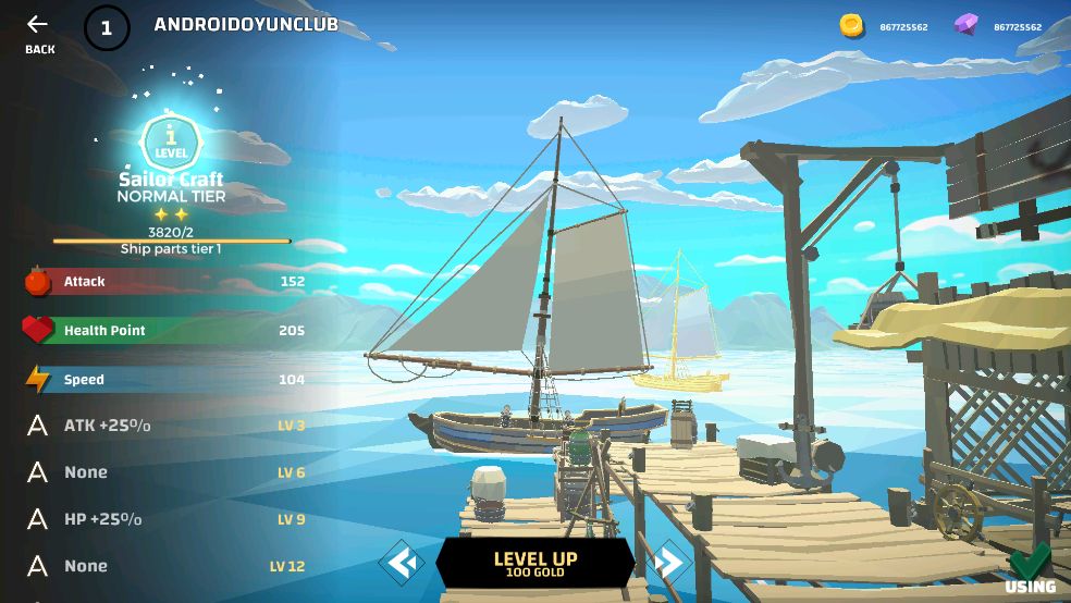 1、升級(jí)船只可以獲得更高的分?jǐn)?shù)值,鉆石可以購買新的寶物;