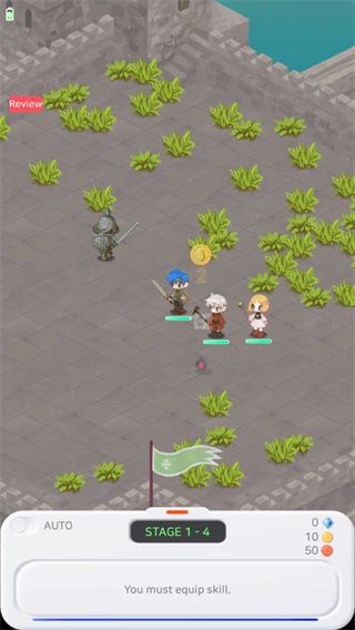 1、清新簡(jiǎn)約的游戲畫(huà)風(fēng),同時(shí)控制三位英雄與你并肩作戰(zhàn),擊敗各種怪物