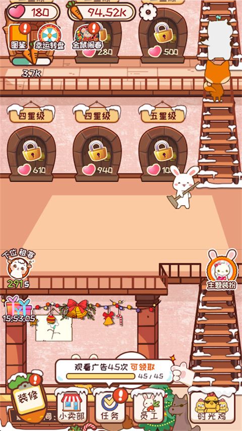 2、收集更多的胡蘿卜來進行升級,解鎖設(shè)施、道具以及更多有趣玩法。