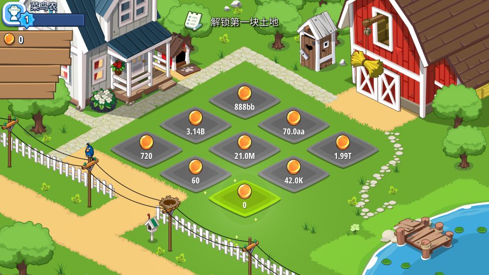 1、線解鎖土地,點(diǎn)擊0金幣解鎖的土地。