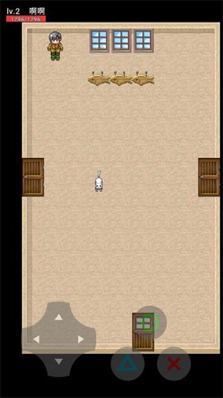 2、進入游戲,游戲采用像素風(fēng)格和豎屏模式打造,左下角控制人物走動,右下角則是各種互動按鍵。