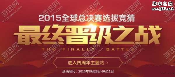 以上就是小編給大家?guī)淼?strong>lol四周年賽事競(jìng)猜送皮膚活動(dòng)網(wǎng)址介紹的全部?jī)?nèi)容了,希望大家喜歡,祝大家游戲愉快!更多實(shí)用攻略,更多最新消息請(qǐng)繼續(xù)關(guān)注JB51!