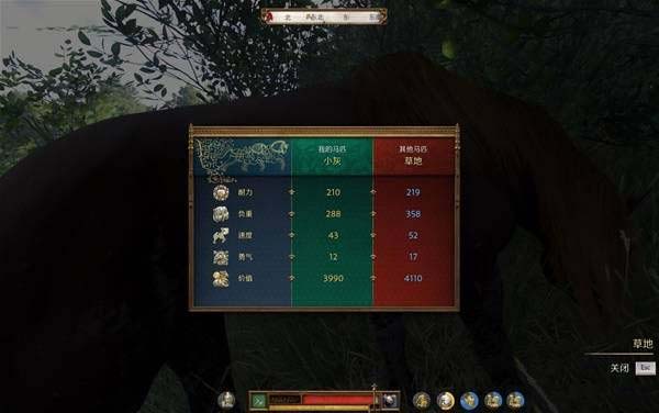 在庫滕堡西南方向強(qiáng)盜營地找到的一匹叫“草地”的馬,屬性比覺醒后的小灰還強(qiáng)不少,距離很近,可以直接騎到城門那邊變成自己的馬。