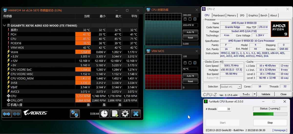 - 主板:X870E AERO X3D WOOD