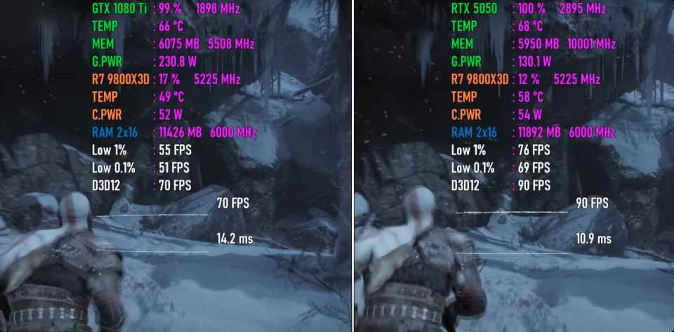8年舊卡還能戰(zhàn)? GTX 1080 Ti 11GB和RTX 5050 8GB游戲性能對比測評