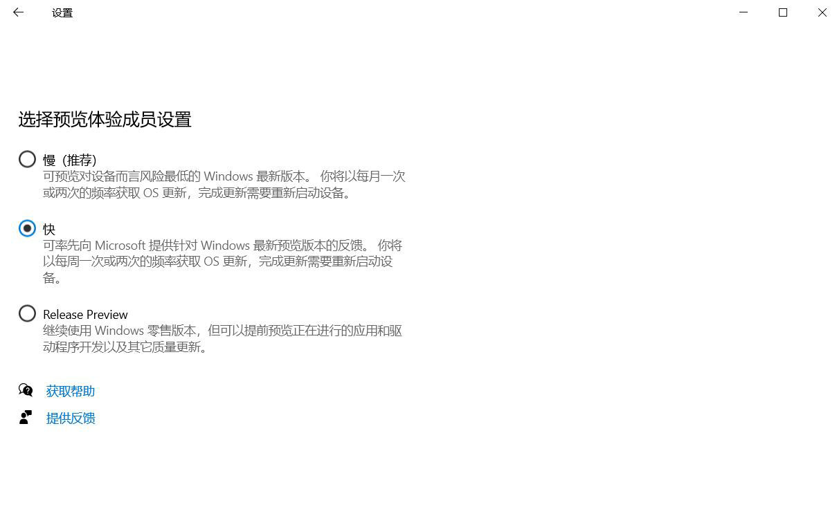 ◆ 選擇預(yù)覽體驗(yàn)成員設(shè)置:快