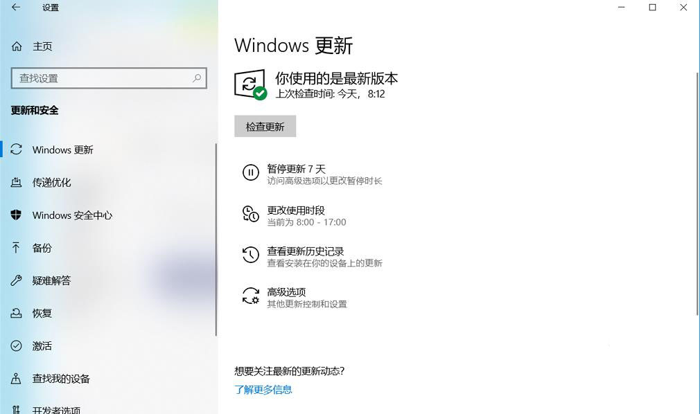 ◆ 檢查更新 進(jìn)入 設(shè)置 - Windows 設(shè)置 - 更新和安全 - Windows 更新,點(diǎn)擊:檢查更新;