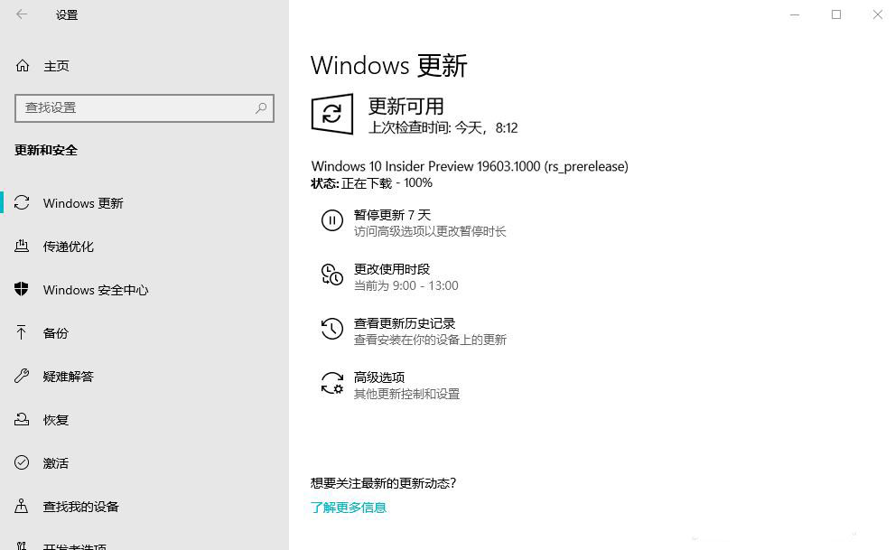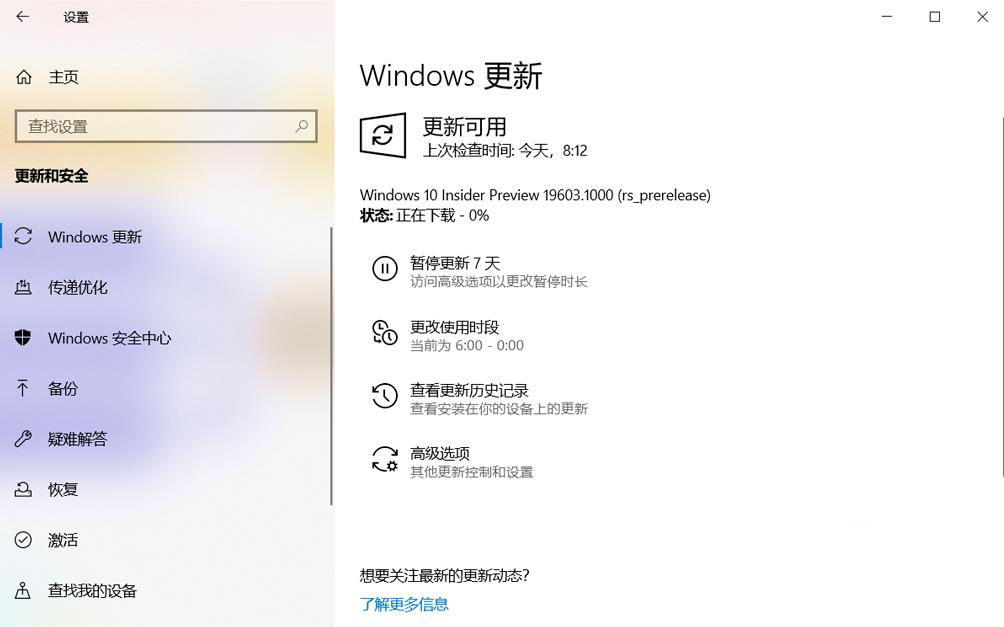 Win10快速預(yù)覽版19603怎么手動(dòng)更新升級(jí)?